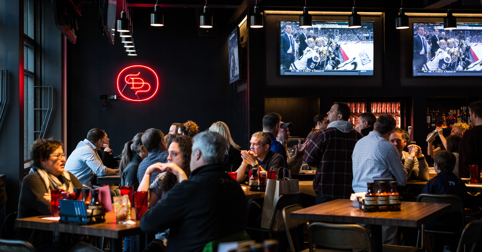 Located directly next door to Wrigley at Gallagher Way, Brickhouse Tavern has four full bars, two outdoor terraces with stadium views, and a solid elevated sports-bar menu. One of the biggest and best-positioned spots for groups before a Cubs game.